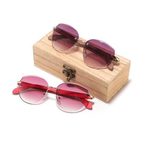 リムレスサングラス,ファッショナブルな女性用ハーフリム金属フレームサングラスレーザーロゴウッドテンプルサングラス高品質偏光シェード